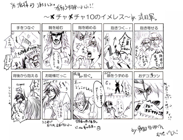 【カップル】イチャイチャ10のイメレス【イメレス】 流様より頂きました。イチャイチャがいつの間にやらメチャメチャにw. そこは武田流儀でご容赦を。途中からどーゆうわけか伊達が乱入してます。